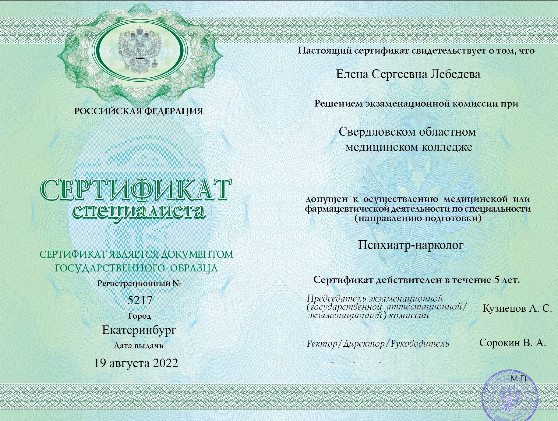 Елена Сергеевна Лебедева врач нарколог клиники доктора Стукаловой в Таганроге
